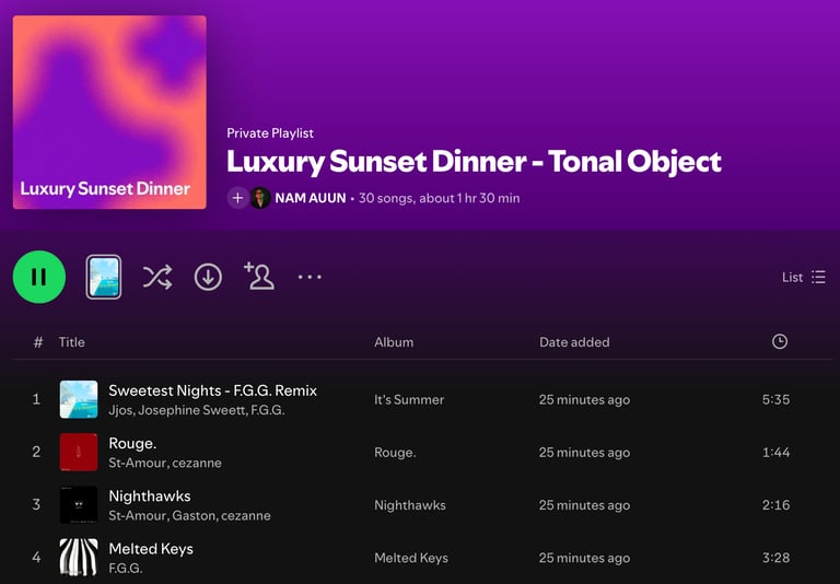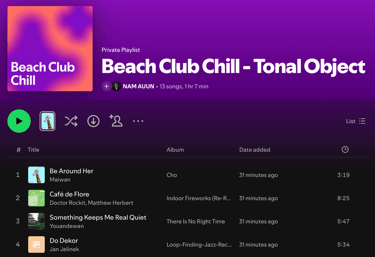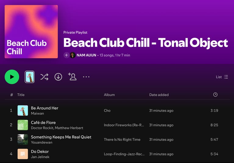 TONAL OBJECT คือบริการออกแบบเพลย์ลิสต์เชิงกลยุทธ์ สำหรับโรงแรม ร้านอาหาร คาเฟ่ Beach Club และ Luxury Business ที่ต้องการสร้างบรรยากาศให้ “ตรงกับช่วงเวลา และตรงกับภาพลักษณ์แบรนด์”